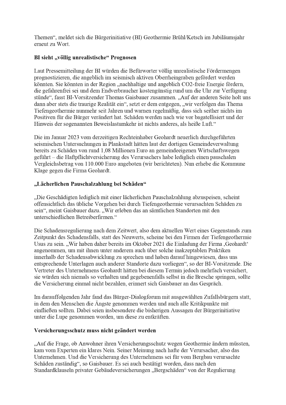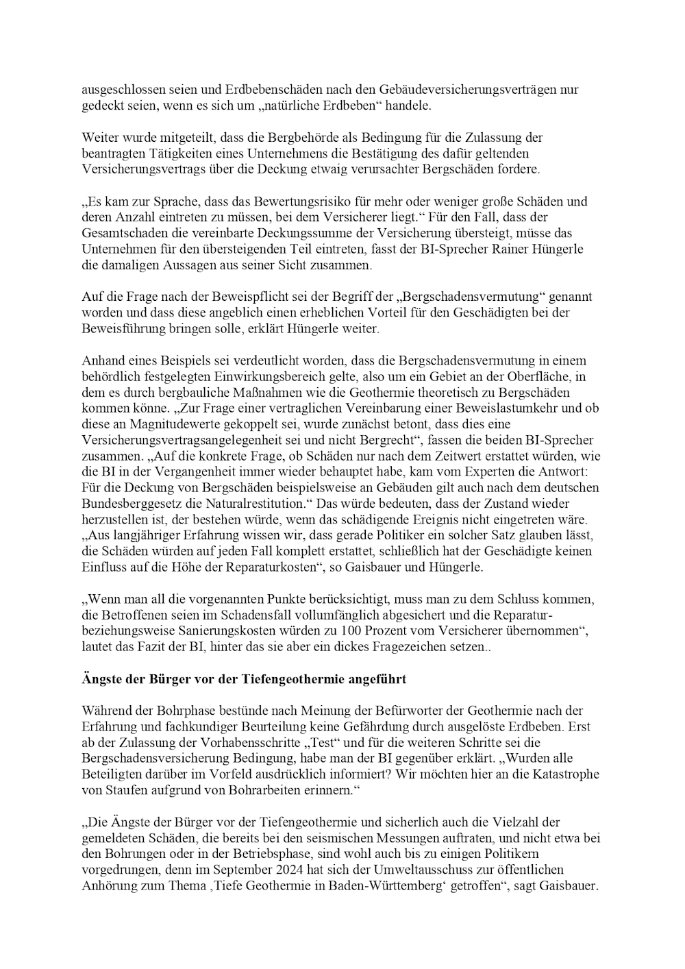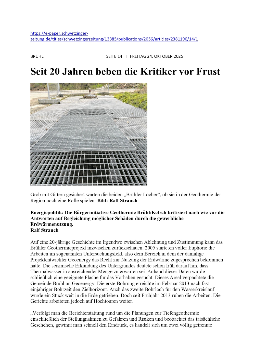 „Der anstehende Injektionstest in Graben-Neudorf ist ein weiterer Meilenstein für unser Projekt und die zukünftige Wärmeversorgung in der Region.“ schreibt der BNN am 20.06.2024.